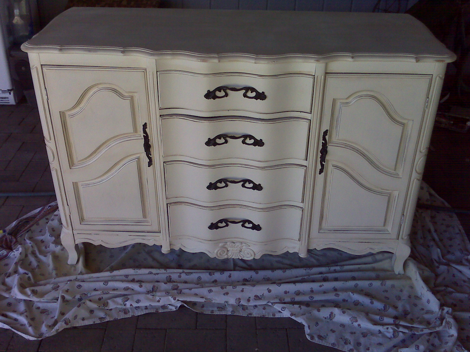 Way back in February I went to a yard sale with my friend Andi. I found this buffet and loved it instantly. Well I didn't realized how much I loved it until I saw another woman talking about buying it. So I ran over and bought it before she could. I paid $30 for it.