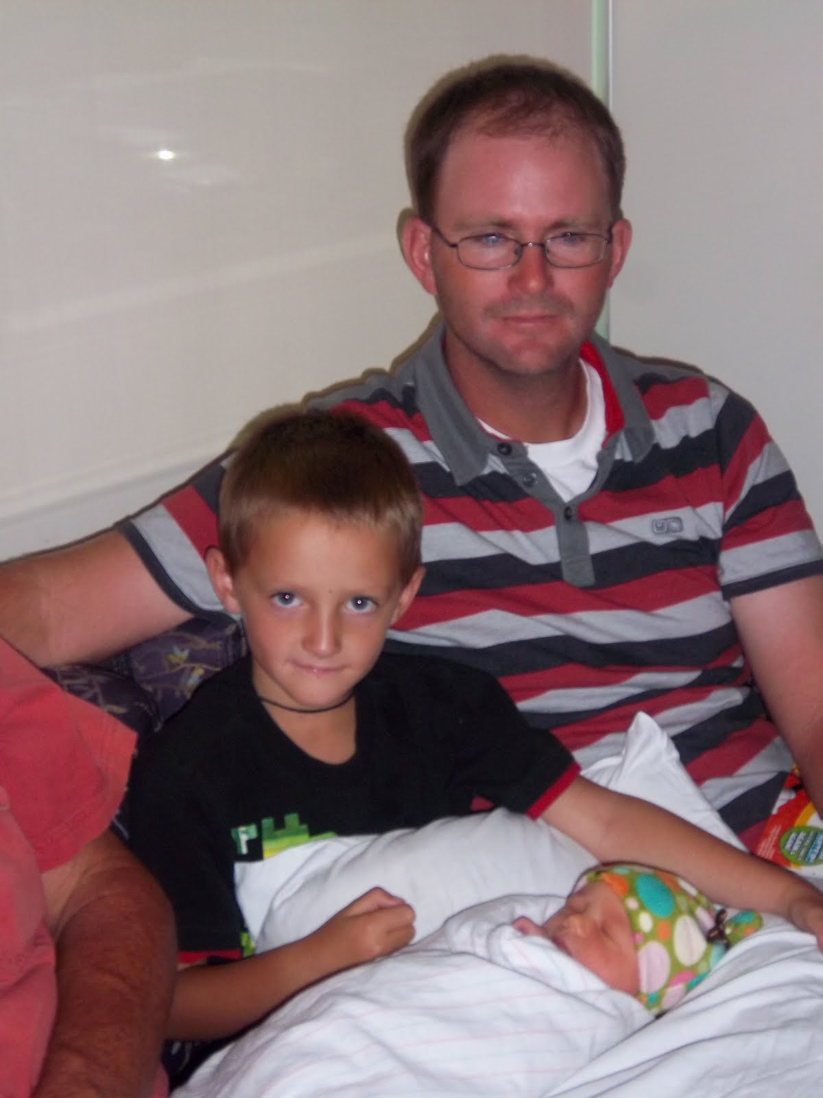 Poor Colby, I guess he thought I was just be waiting in the room completely normal with a baby, instead he came in and I was pale and laying in bed. The poor guy got really scared and ran to Jeremy and cried. He eventually calmed down and wanted to hold his sister. At this point we still hadn't decided on a name, it was between Mallory and Brinley. So we asked the boys which name they like, Jayden said he didn't like either. Instead he combined the names and said he wanted to name her Muggy. Cute.....but not quite the name we were looking for.
