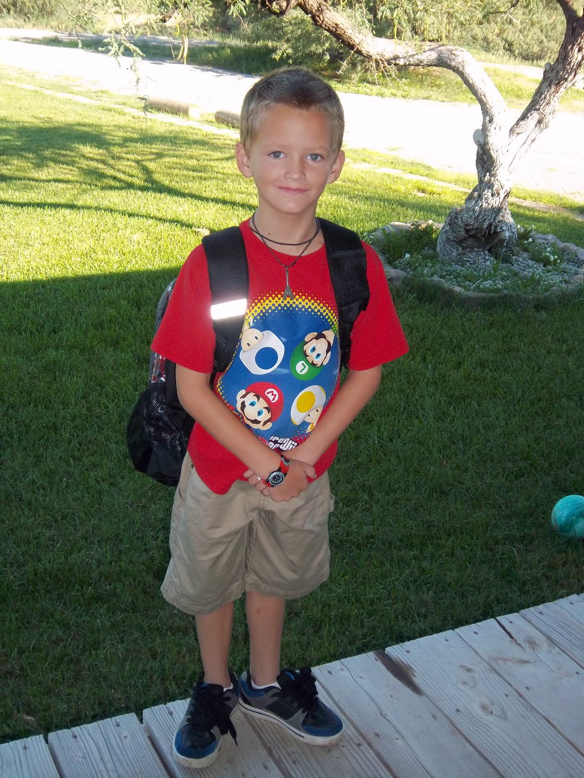 Colby is in the first grade this year. Colby was so excited to go back to school and see all his friends again. He is all about the social life at school. He loves it. This year his teacher is Mrs. Homerski....who I think he has a crush on. Whenever he sees me making flowers for Brinley he wants to take one to his teacher. And more than once he has cut a rose from the bushes outside to take to her. He is so sweet like that.