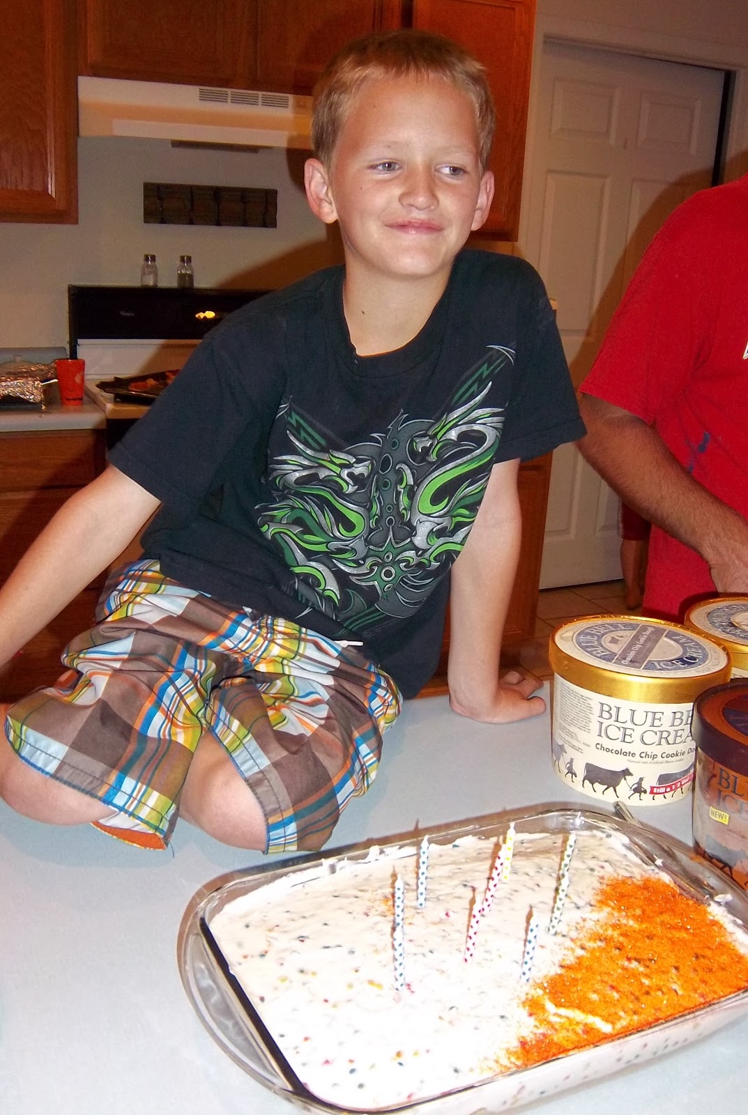 Happy birthday Grayson! Nine years old! We just had a small party with cake and ice cream at our house. He didn't get to have a party with his friends because his mean mom did not have time. So we got him a few extra presents.