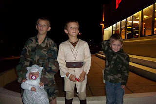 The actual day of Halloween was on Monday. I was gone at school so Jeremy took the kids out trick or treating alone. What a good dad! They even went and ate dinner at Wendy's first. Grayson was the die-hard and wanted to keep going. The other kids were done after just a block or two.