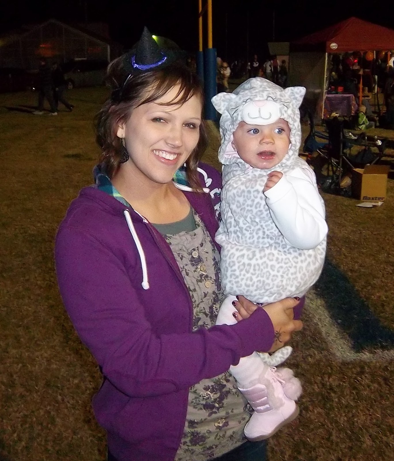 This was Brinley's first real Halloween. She was here last year but she was only three months old. She a a cat, or as she would kind of say "kitty". It was the cutest little costume. Her tail swayed back and forth when she walked.