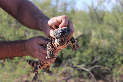 Grayson ran back to the house so he could get a picture with his new ipod. Then Jeremy wanted me to run and get my fancy new camera. When I left the gila monster was on the ground.....a few minutes later I returned out of breath with my camera and Jeremy was holding it.